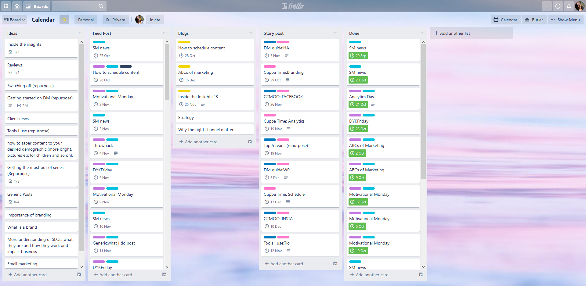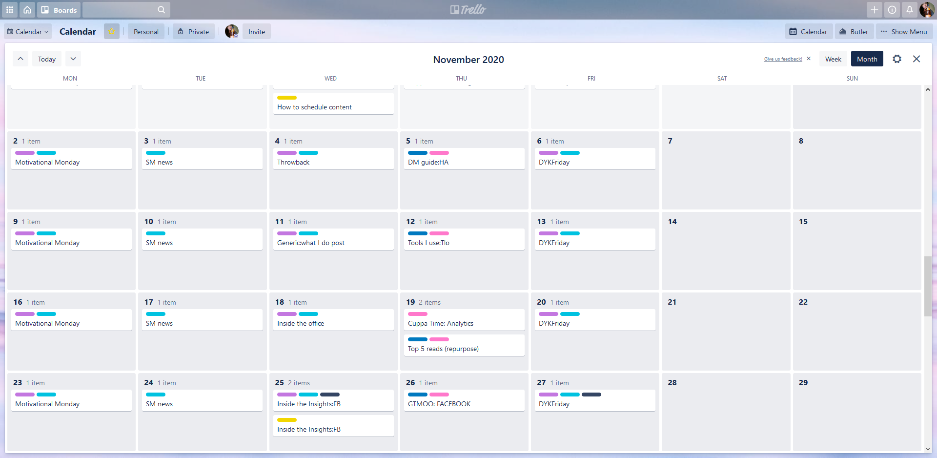 For those who haven’t heard of Trello, it is commonly used for task/project management but a little secret is that it can also be used for scheduling content.